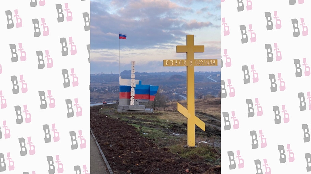 Шестиметровый поклонный крест на въезде в Первомайск.