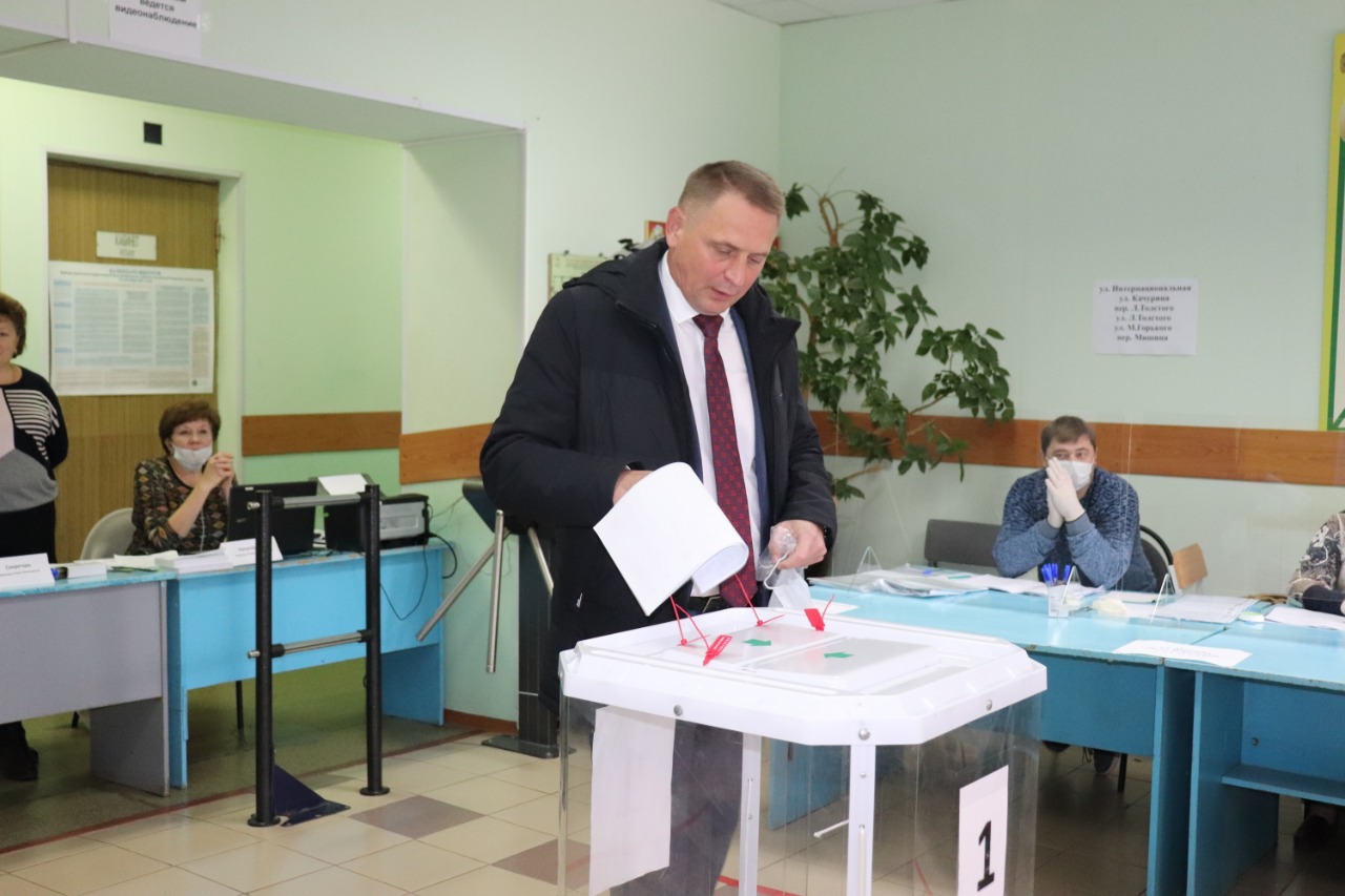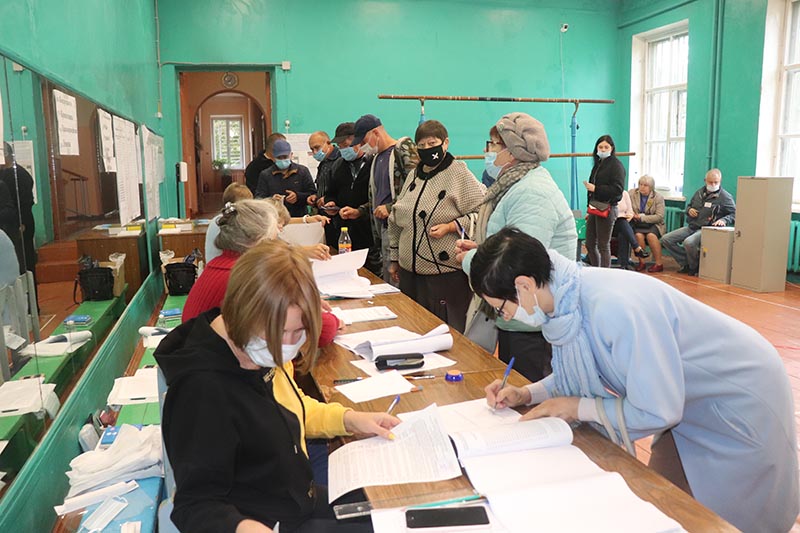 С самого начала наблюдается высокая активность избирателей. На некоторых участках даже образовалась очередь к столам регистрации и урнам. Люди приходят голосовать целыми трудовыми коллективами и семьями. В числе первых выполнил свой гражданский долг глава районной администрации Владислав Поляков.