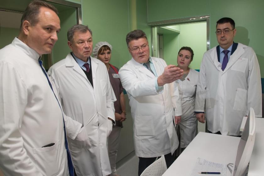 Глава региона осмотрел модернизированное отделение реанимации и анестезиологии, а также операционный блок.