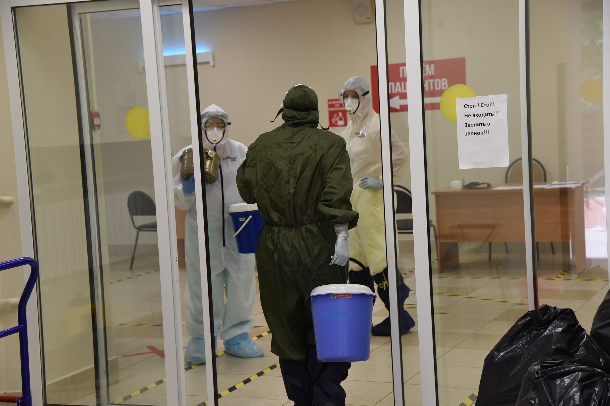 Заведующие тоже ходят в красную зону ежедневно: требуется контроль за назначением лечения да и другие вопросы приходится решать. Вот Евгений Теплов, заведующий вторым отделением по коронавирусу, говорит, что в общей сложности провел в зоне уже более полутора суток. В его отделении в красной зоне работают четыре студента-добровольца.