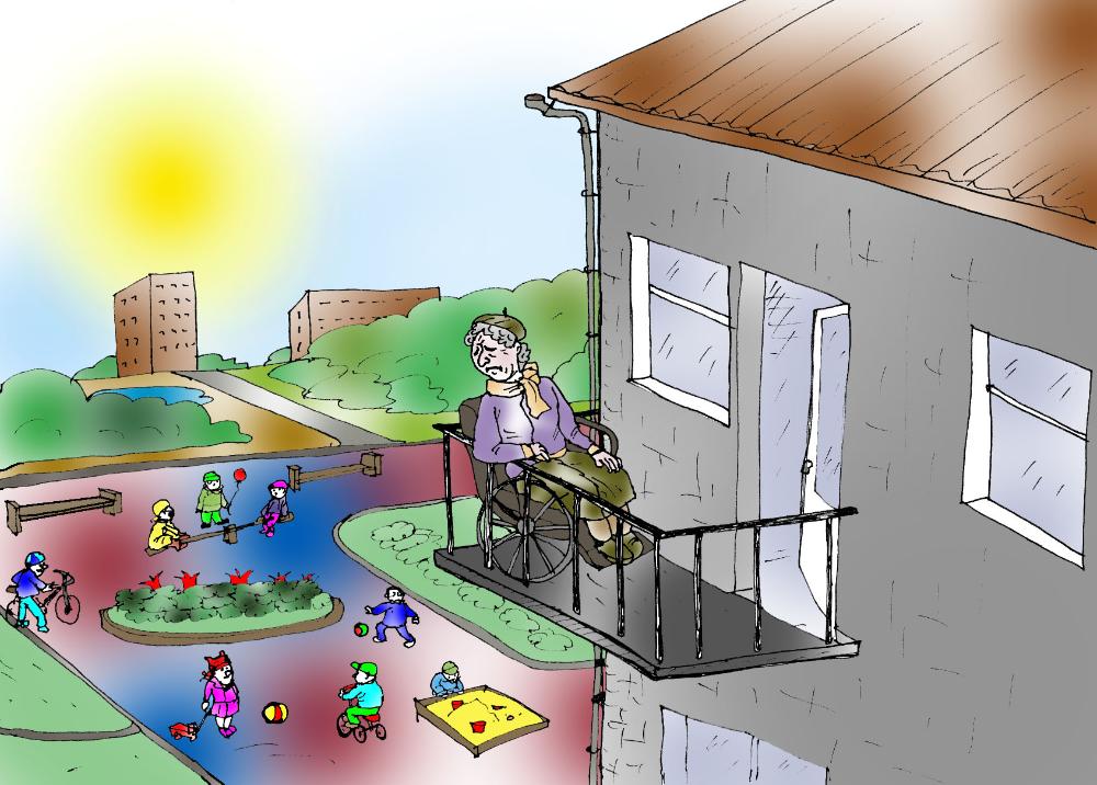 – Из моего окна, – рассказала Ольга Никифорова, инвалид первой группы, – виден кинотеатр «Центральный», аптеки, магазины — все с пандусами. Предполагается, что я на своей коляске могу в них попасть. Но как, если я даже не в состоянии выйти из квартиры и спуститься вниз? В высотных домах есть хотя бы лифты, а в пятиэтажке — нет.Но и наличие лифта не выход. Спустившись на лифте в инвалидной коляске, больной человек вряд ли сможет двигаться далее самостоятельно. От лифта на улицу ведут все те же ступени. А если все же удастся выбраться, человек на коляске вскоре поймет, что большинство пандусов вовсе не для того, чтобы инвалид въезжал по ним сам, они для того, чтобы помощник мог вкатить больного в случае надобности, например, в аптеку. К тому же пандусы ведь имеют обыкновение заканчиваться входной дверью, которую без помощи не преодолеть. Поэтому надобность в пандусах возникает все реже. Так что же делать, если надо выйти из дома?