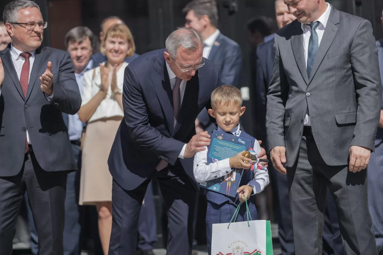 Школу помогали возводить строители из Республики Беларусь. СредВ числе почетных гостей был и Чрезвычайный и Полномочный Посол Беларуси в РФ Александр Рогожник. Новую школу нам помогали строить белорусские строители. Уже 20 социальных объектов в регионе с их участием.