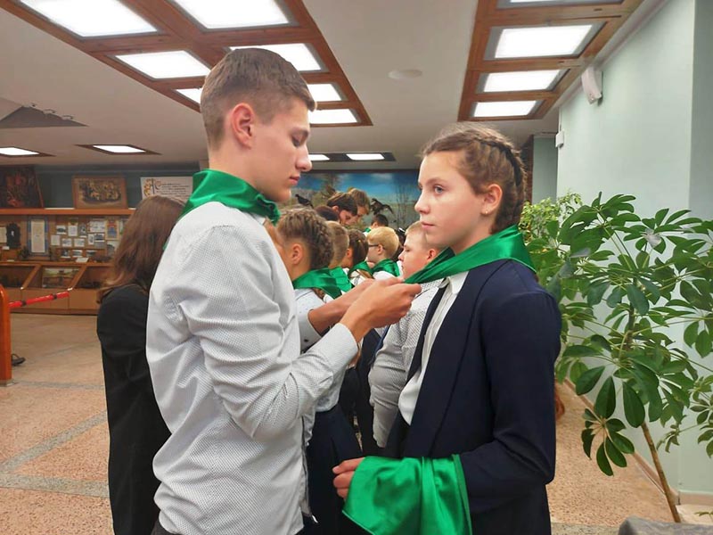 Добровольно принимая почетное звание юных экологов, ребята пообещали содержать в чистоте окружающую среду, учить сверстников и младших товарищей бережному отношению к природе. И скрепили эти слова повязанным зелёным галстуком.