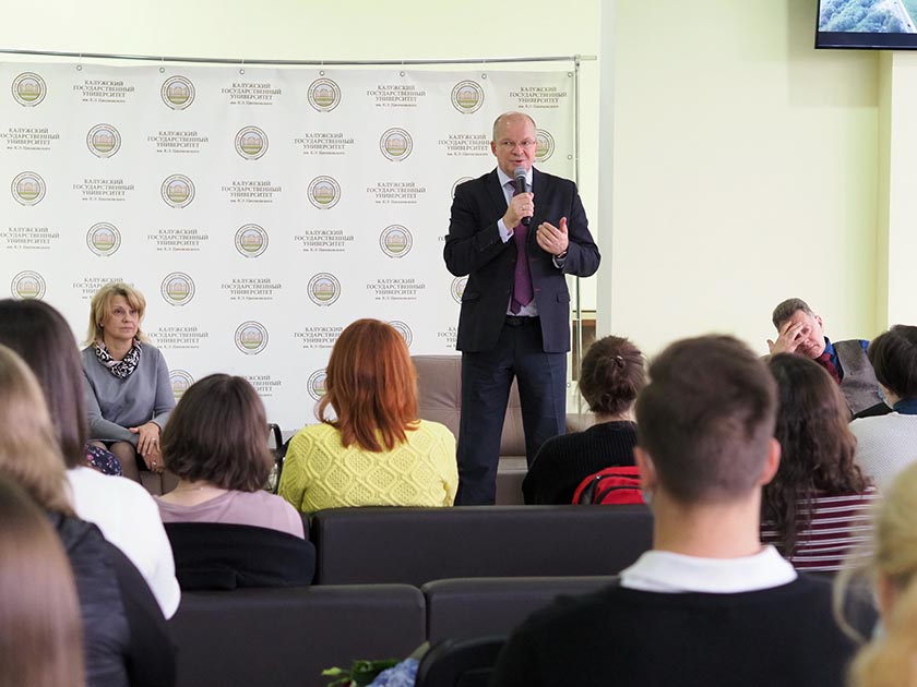Министр образования и науки региона Александр Аникеев встретился со студентами КГУ им. К.Э. Циолковского и Калужского индустриально-педагогического колледжа. Такие встречи проводятся традиционно накануне Международного дня учителя, который отмечается 5 октября.