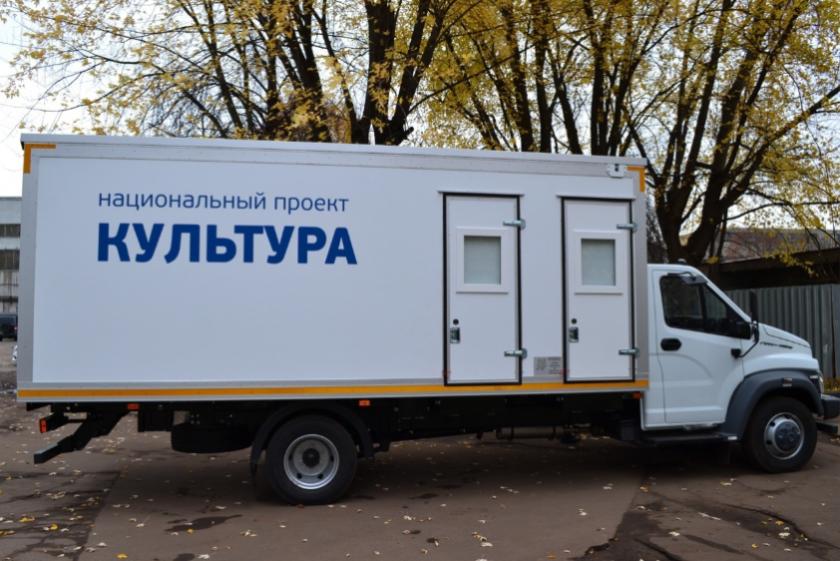 Это специализированный автотранспорт, оснащенный площадкой, световой установкой, звукоусилительной аппаратурой. Он укомплектован всем необходимым оборудованием для проведения мероприятий в населенных пунктах, где нет стационарных учреждений культуры.