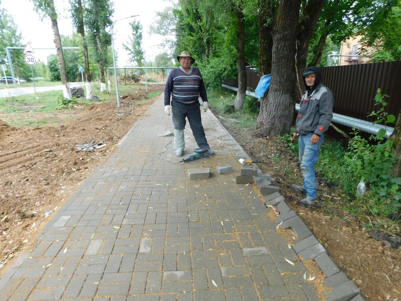 Эта локация представляет собой аллею вдоль центральной улицы. Подрядчиками проведена вертикальная планировка территории благоустройства, убрана ненужная растительность. Установлены современные светодиодные светильники. Сейчас рабочие завершают укладку тротуарной плитки на пешеходной дорожке аллеи.