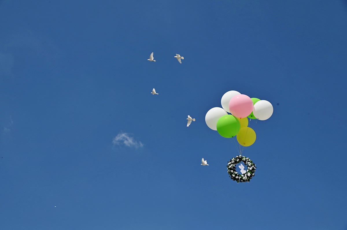 В финале праздника супружеские пары, молодожены и приглашенные гости выпустили в небо белых голубей и венок из ромашек.