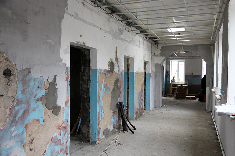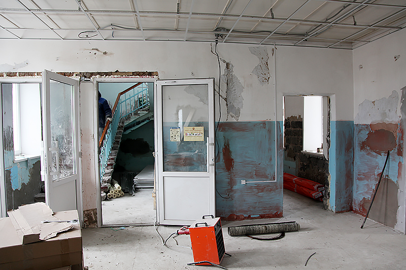 Уже заменены теплотрасса и отопительная система лечебного учреждения. Выставлены двери и окна, которые заменят на новые. Идёт внутренняя отделка помещений.