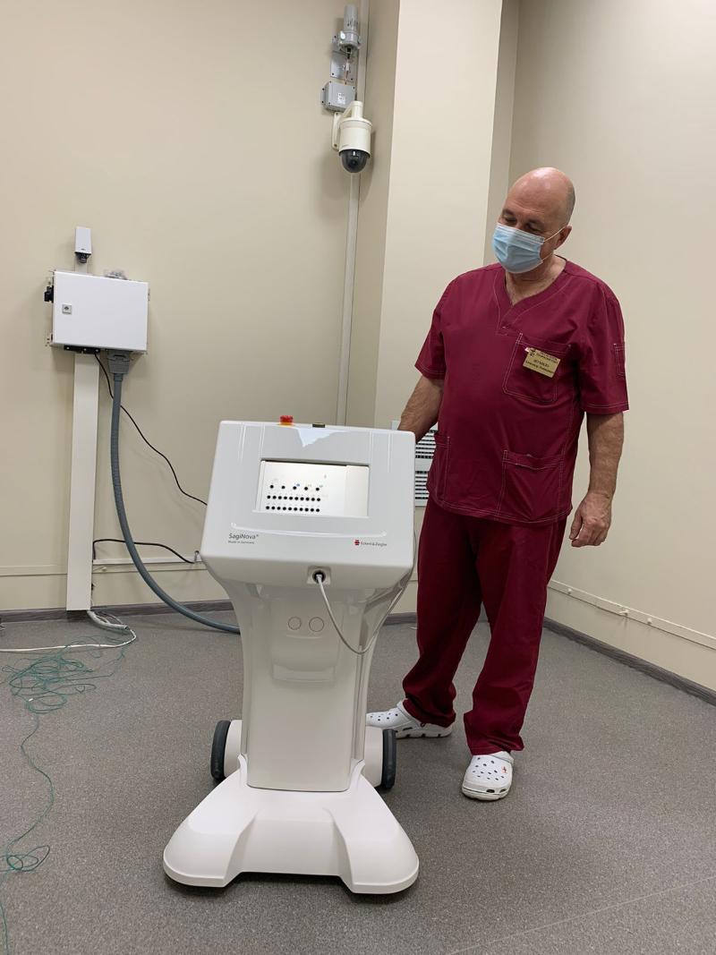«Аппарат гамма-терапевтического контактного облучения SagiNova позволяет контролировать дозу облучения в режиме реального времени. Это аппрат последнего поколения, который имеет уникальные возможности для обеспечения безопасности пациентов. Это позволит нам с большей эффективностью лечить онкологические заболевания, в том числе, на ранних стадиях», — пояснил заместитель министра здравоохранения области Илья Мохов.