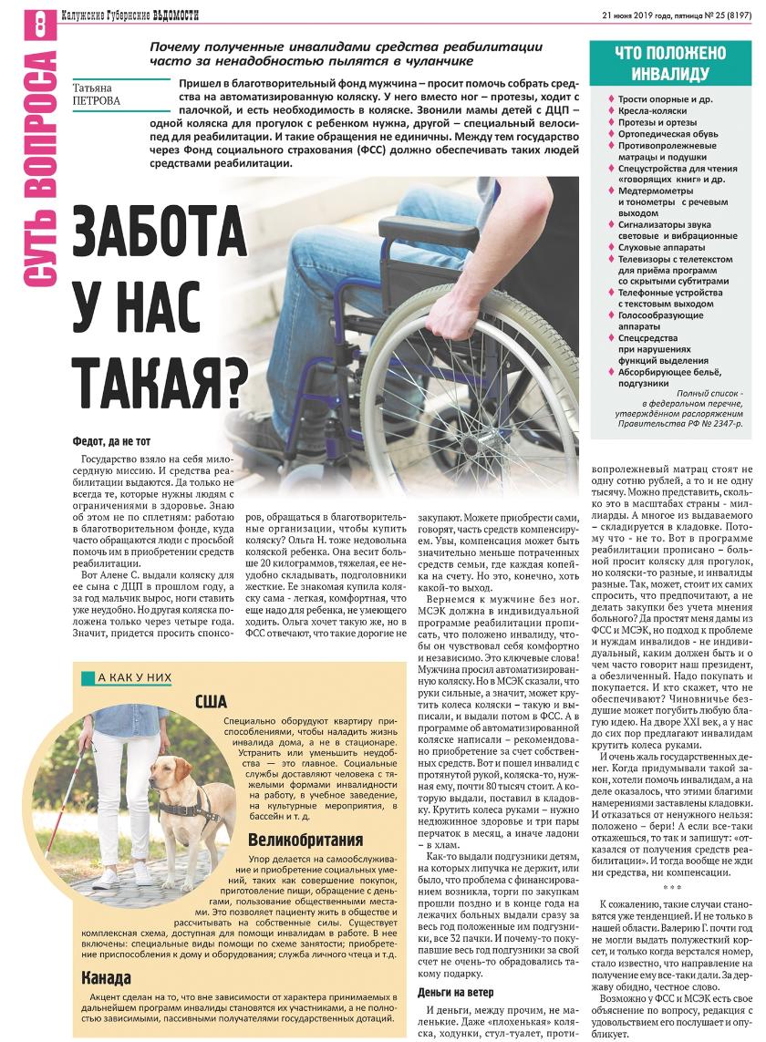 После выхода статьи в редакцию «КГВ» тут же позвонила управляющая Калужским региональным отделением Фонда социального страхования РФ Ольга Иванченко и пригласила познакомиться с деятельностью фонда поближе.