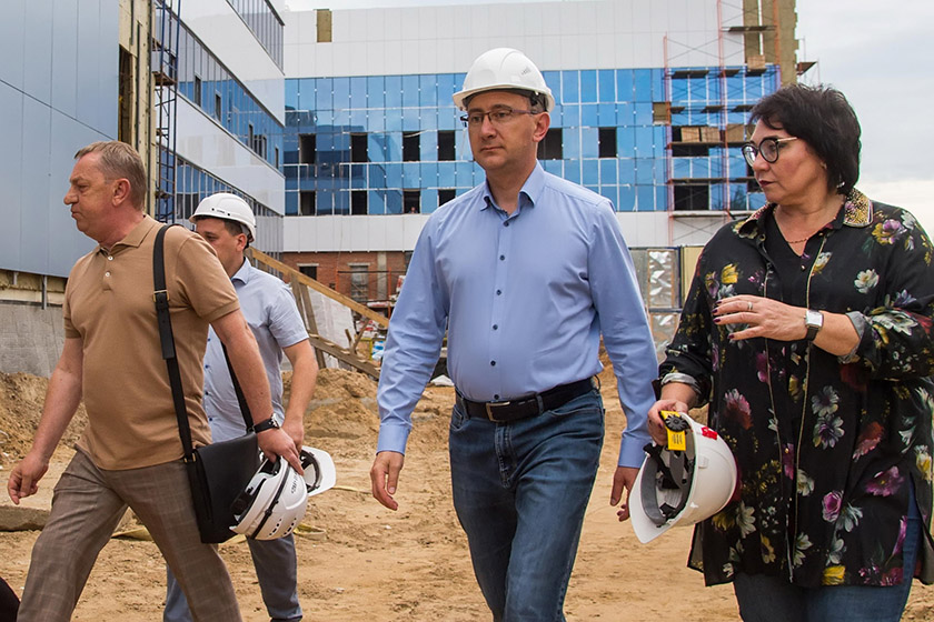 Осмотрев объект, Владислав Шапша поручил подрядчику оперативно и своевременно вывозить мусор и неиспользуемое строительное оборудование со стройки.