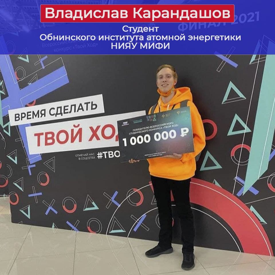 Торжественная церемония награждения прошла в парке науки и искусств «Сириус». Среди организаторов конкурса - АНО «Россия — страна возможностей». В финал конкурса вышли 1000 студентов, в том числе 7 представителей Калужской области. 200 победителей получили премии в размере 1 млн. рублей, которые можно потратить на обучение, запуск стартапа или улучшение жилищных условий.