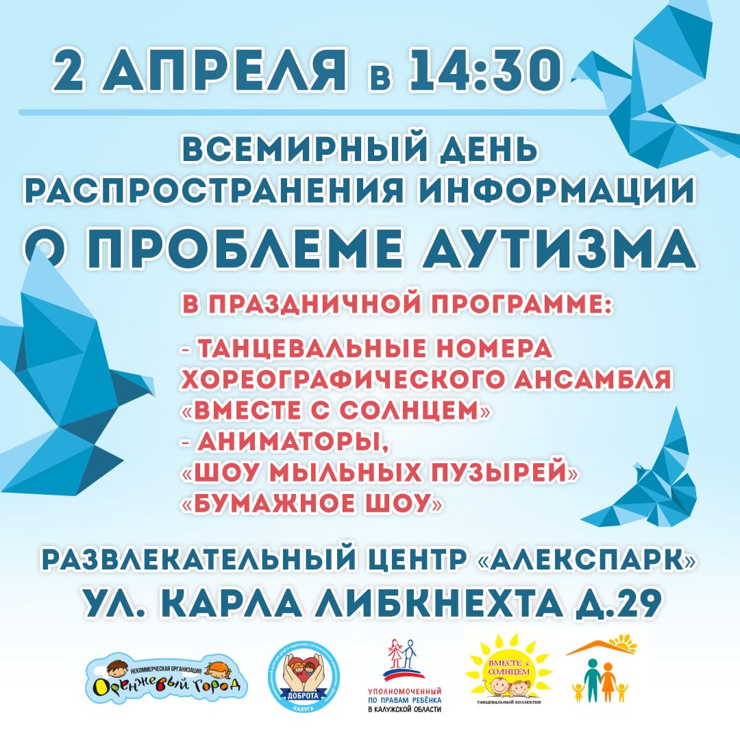 Для тех, кто выберет в этот день общение и веселье, в развлекательном центре «Алекспарк» пройдёт праздничное мероприятие, посвящённое Всемирному дню распространения информации о проблеме аутизма.