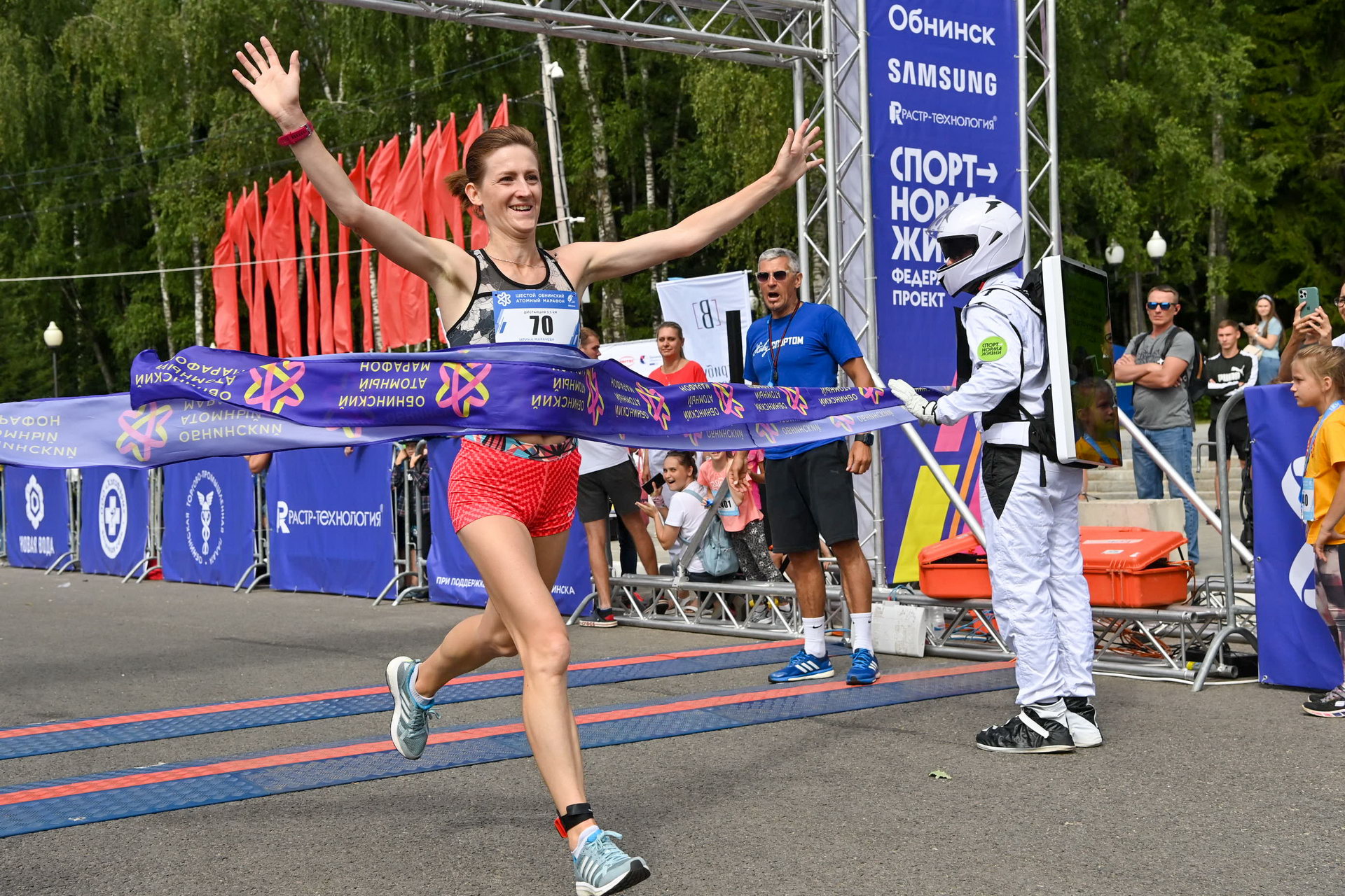- «Обнинск – замечательный город, молодой, зеленый. Как говорят, молодо-зелено. Здесь действительно очень много молодых людей и очень зелено вокруг. Я поздравляю всех обнинчан с праздником, желаю успехов спортивных, хорошего настроения, успехов в жизни, благополучия. С праздником!», - сказал Владислав Шапша, отвечая на вопросы журналистов после марафона.