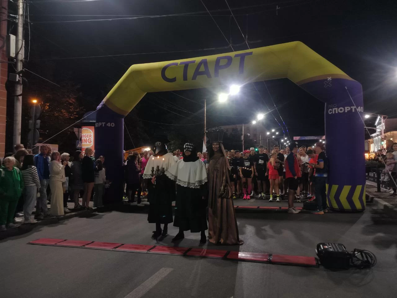 «» «Я рад, что третий забег «Калуга ночь» сейчас состоится. Хочу отметить, что нас становиться всё больше. Если в первый год бегали 300 человек, то сейчас почти 700. Я хочу пожелать каждому из вас хорошей дистанции. Получите удовольствие от бега и заодно наполните город светом этих замечательных гирлянд и положительной энергией».На старт, который был на улице Кирова, вышли более 600 спортсменов. Затем бегуны направились через сквер Мира, Каменный мост, Гостиные ряды, улицу Ленина, Кирова, площадь Победы, улицу Московскую, Достоевского и Театральную. Конечной точкой маршрута стала Театральная площадь. Как только бегуны пересекали финишную черту, их награждали медалями. Первыми к финишу прибежали Татьяна Брулева и Константин Шишов, а последним прибывшим стал дедушка.