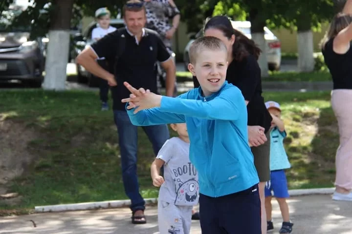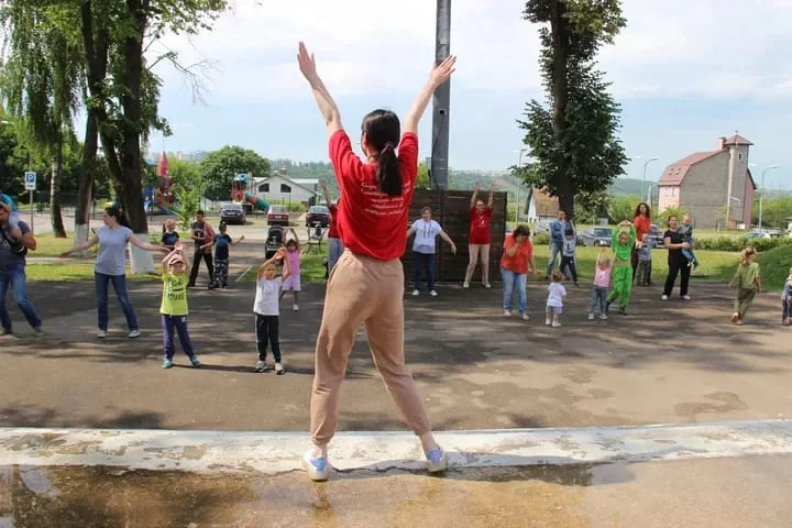 Зарядка регулярное мероприятие для фонда, в ней участвуют дети, их родители, волонтеры. Вместе со специалистами они выполняли упражнения, укрепляющие здоровье.
