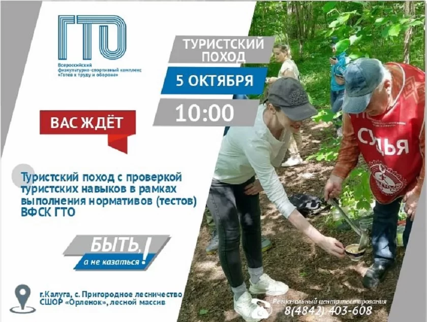 Как сообщают в соцсетях «ГТО Калуга», мероприятие стартует в 10:00 на территории лесного массива СШОР «Орленок» в поселке Пригородное лесничество. К месту сбора, расположенному на футбольной площадке, требуется подойти в 09:30. Регистрация будет проходить до 10:20, а само мероприятие завершится в 14:00.