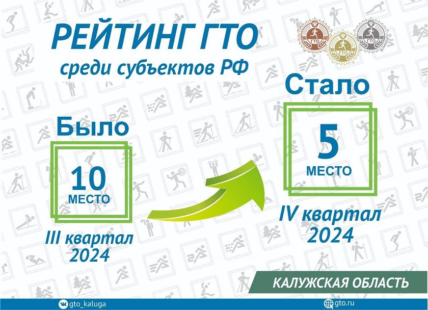 В регионе к движению ГТО присоединились 255 тысяч человек. 177 тысяч граждан сдавали нормативы в 29 центрах тестирования, а почти 169 тысяч претендентов выполнили упражнения на знаки отличия. Кроме того, в регионе опубликовано больше восьми тысяч материалов о комплексе ГТО, что на 30% больше, чем в 2023 году. Чаще всего население информировали средства массовой информации Калуги, Боровского, Дзержинского и Кировского районов.