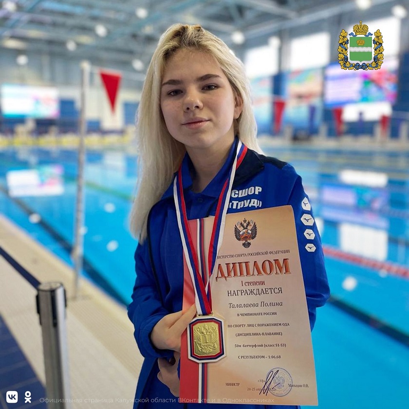 Девушка является воспитанницей калужской спортивной школы «Труд». На чемпионате она преодолела дистанцию в 50 метров баттерфляем за рекордное время – 1: 06: 68.