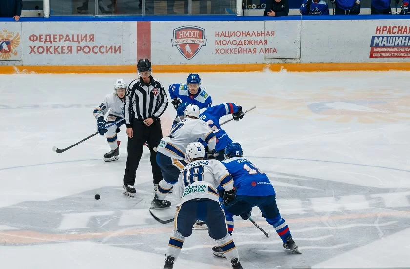 Первое вбрасывание выигрывает «Калуга», а затем «ракеты» сразу идут в атаку. Но «Гранит» сдаваться не намерен. Как и в предыдущей игре команды играют в силовой хоккей с интересными передачами и нападением. На девятой минуте форвард калужан Захар Мешканцов отправляется на штрафную скамейку за задержку клюшки соперника, а вместе с ним судьи удаляют игрока гостей за толчок клюшкой. Во время игры четыре на четыре «ракеты» уверенно идут в атаку, но и чеховцы от них не отстают. После выходов на лёд пятерых хоккеистов игра становится напряжённее: появляется больше столкновений и конфликтных ситуаций, обе команды хорошо держат оборону своих ворот. Первый период заканчивается со счётом 0:0.