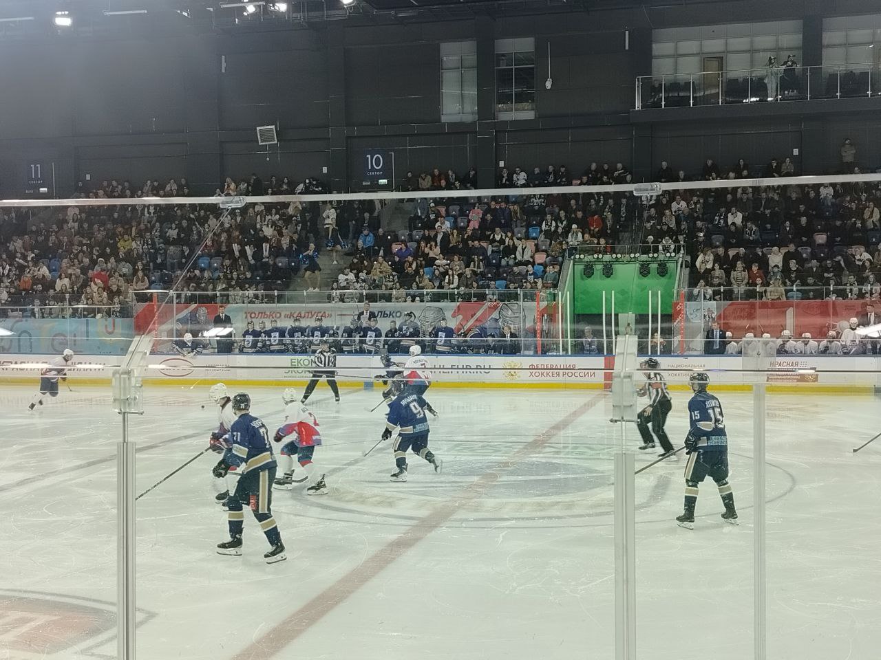 Исход игры решился в последнюю минуту. Именно на ней калужане смогли сравнять счёт и тут же забить ещё одну шайбу.