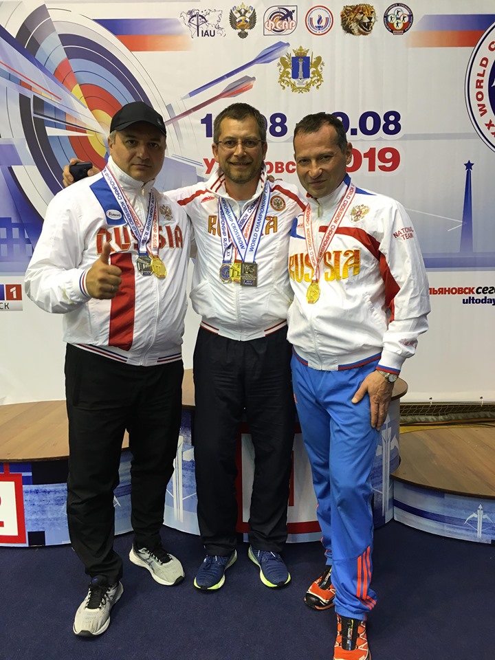 В Ульяновске завершился уже двадцатый по счёту чемпионат мира по стрельбе из арбалета. На родине вождя мирового пролетариата в меткости состязались более 500 арбалетчиков из 33 стран. Сборную России в матчевой встрече (командное первенство, категория «Сеньоры 45+», расстояние 10 метров) возглавил уроженец наукограда, заслуженный мастер спорта, олимпийский чемпион по стрельбе из винтовки в Атланте (1996) и вице-чемпион игр в Сиднее (2000) Артём Хаджибеков (на фото справа). Вместе с Артуром Айвазяном из Крыма и Денисом Бикеневым из Ленинградской области наш прославленный чемпион вновь поднялся на высшую ступень пьедестала почёта!В индивидуальном зачёте (стрельба с 30 метров) Артём Хаджибеков и Денис Бикенев завоевали серебряные награды.
