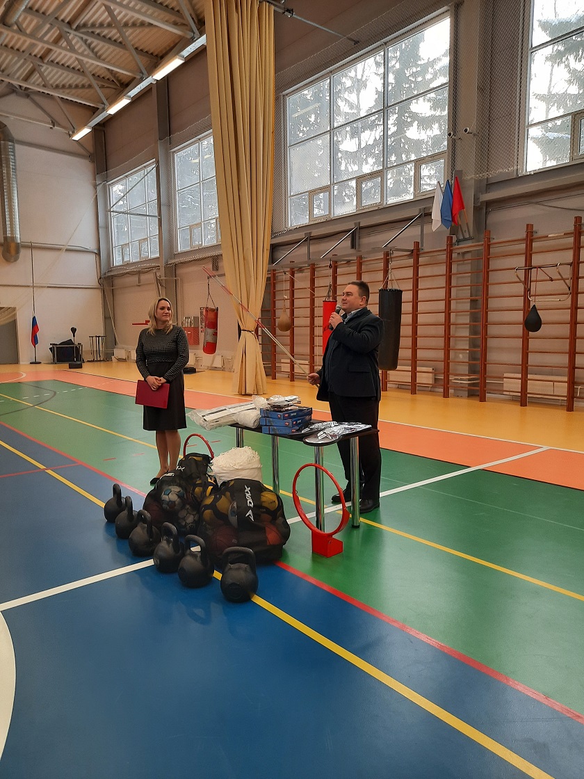 Гири, волейбольную сетку, мячи и многое другое для тренировок тарусян глава района передал руководству спортшколы «Лидер» Инне Королёвой и Сергею Колосову.