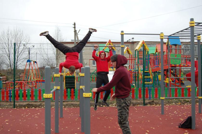 Площадку в течение трех месяцев возводила подрядная организация из Подмосковья. Объект представляет собой поле размером 15 х 20 метров, обнесенное ограждениями, с современным прорезиненным покрытием, позволяющим избежать травм при падении. На нем установлены восемь спортивных тренажеров, развивающих все группы мышц: здесь есть брусья, турники, рукоходы и многие другие снаряды, помогающие укрепить тело и дух, получить заряд бодрости и хорошего настроения.
