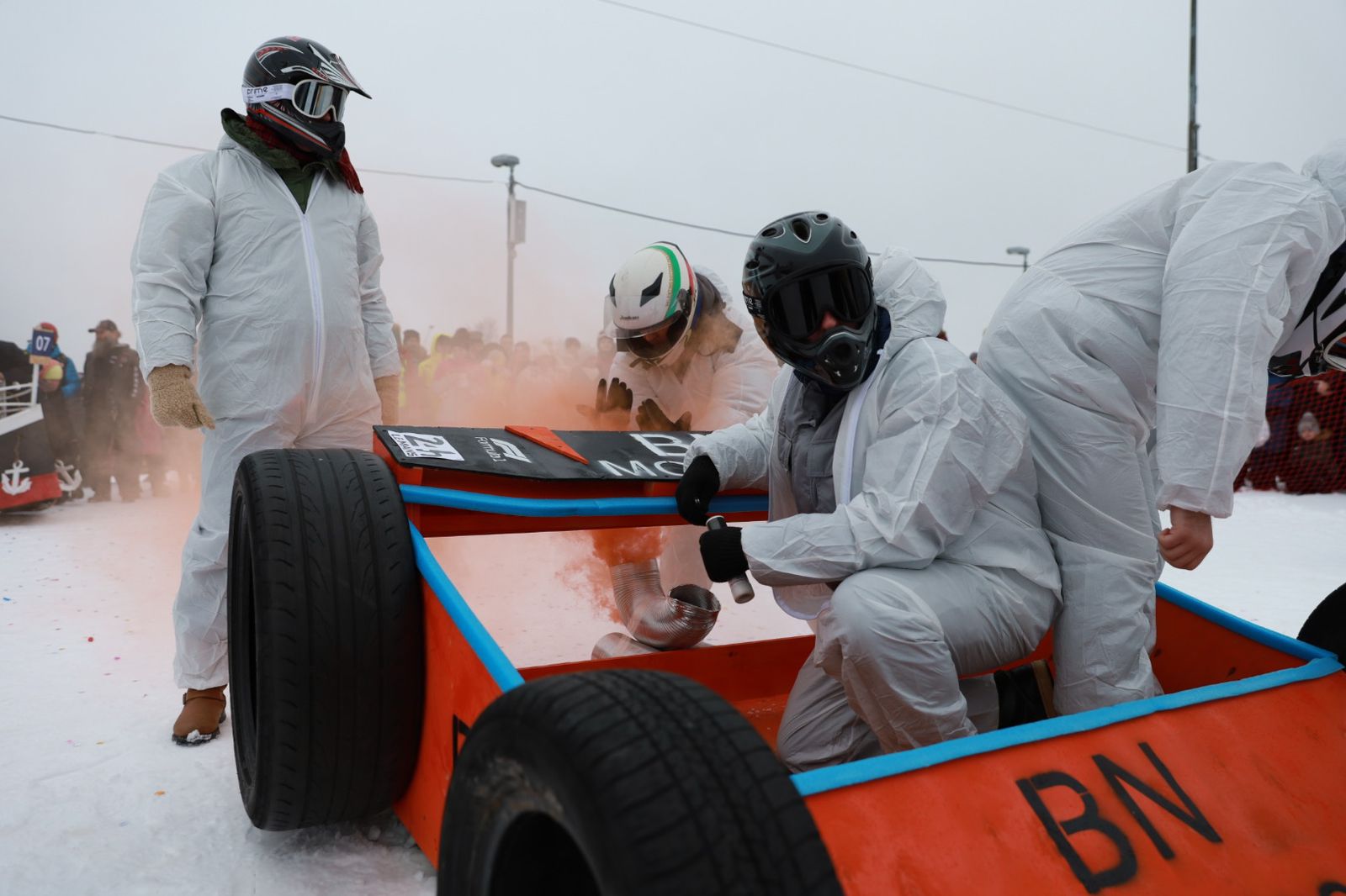 Овации зрителей, которые спешили заснять спуск каждого конкурсанта, вызвал поезд с героями советского фильма «Джентльмены удачи». Они скатились, лежа под своими санями. Также болельщики остались под впечатлением от огромного экипажа сотрудников полиции, которые гнались за «грабителями» банка на снегоходах.