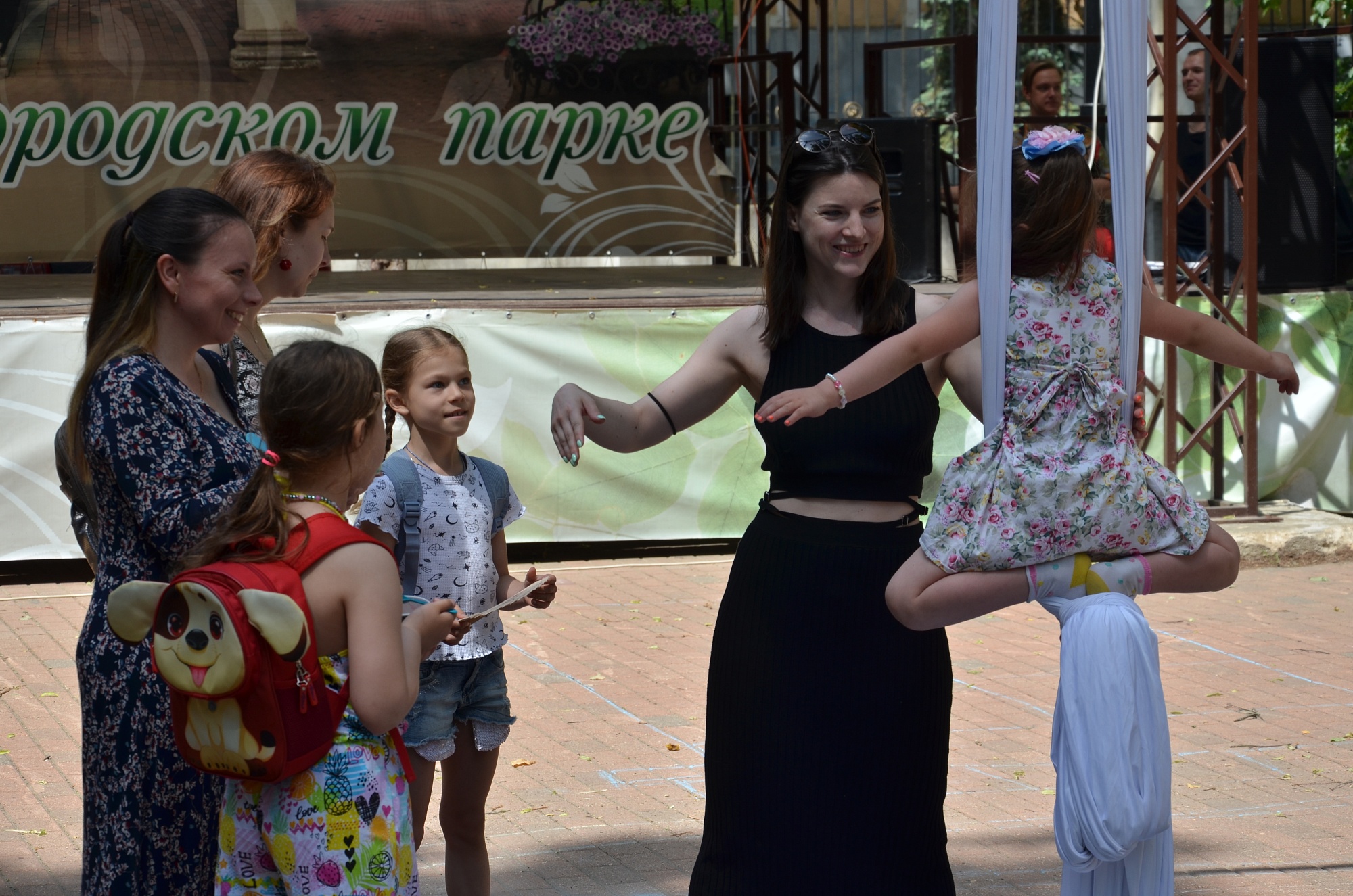 Во второй части программы преподаватели обучали зрителей базовым навыкам на воздушном полотне. Больше часа у гимнастического снаряда не было отбоя, а очередь из желающих только росла. Особенно сильно полотно полюбилось детям дошкольного возраста, которые стягивались на его необычный вид со всех уголков парка культуры и отдыха.