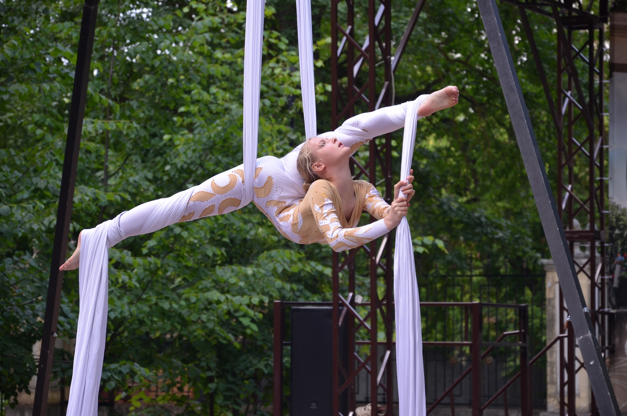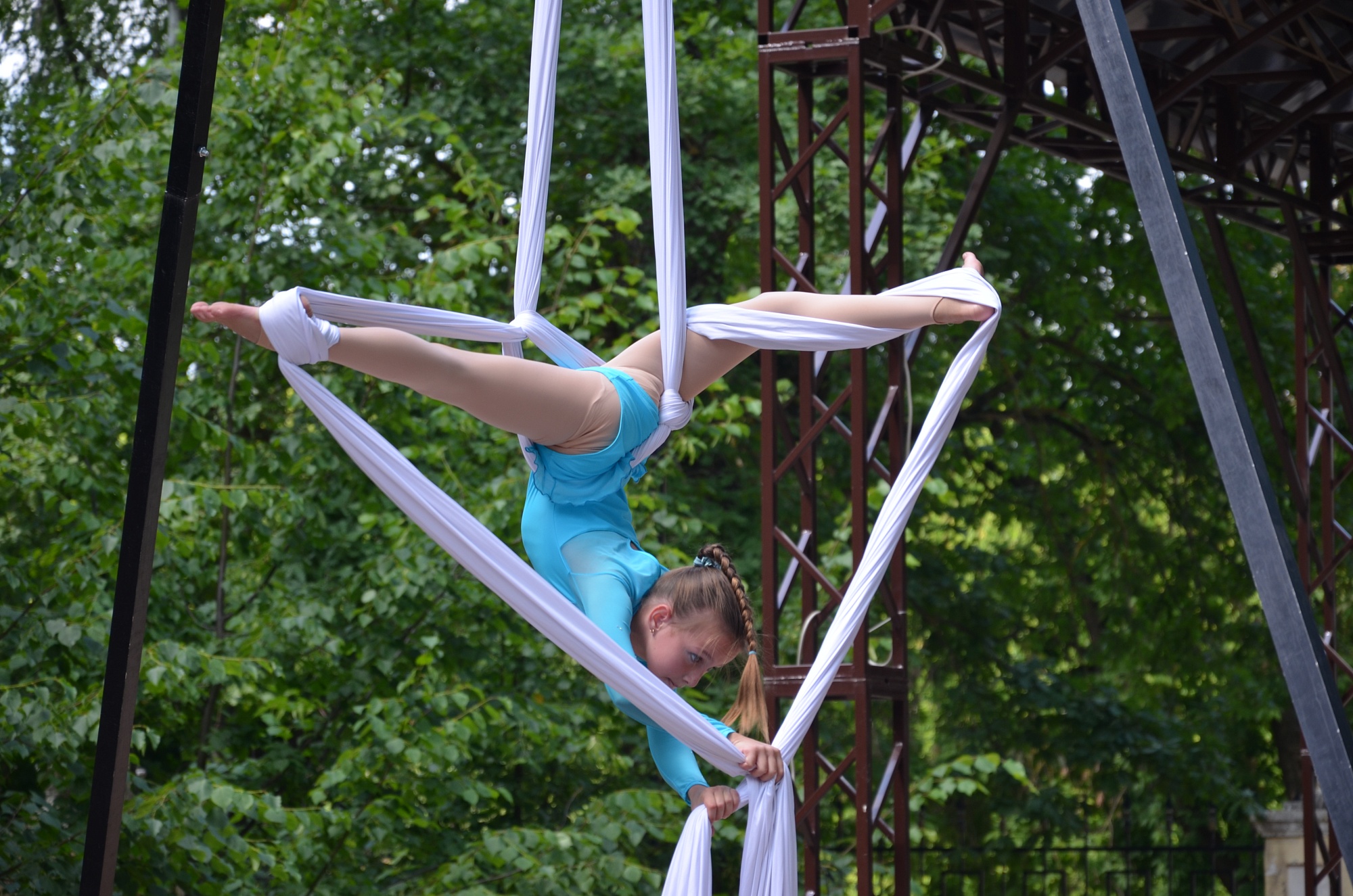 Воспитанники центра Ирины Носовой показали зрителям номера, в которых выполняли различные элементы на воздушном полотне. Юные акробаты уже владеют азами этого жанра циркового искусства, которые постигли довольно быстро.
