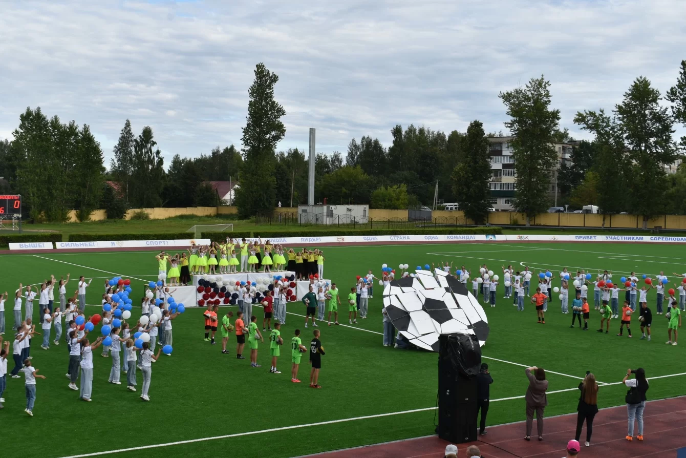 На стадионе состоялся масштабный спортивный праздник, его открыла ритм - студия барабанщиц «Эполет» из города Людиново. В массовой театрализованной постановке приняли участие более трёхсот юных спортсменов из спортивной школы «Лидер» и детских творческих коллективов города.