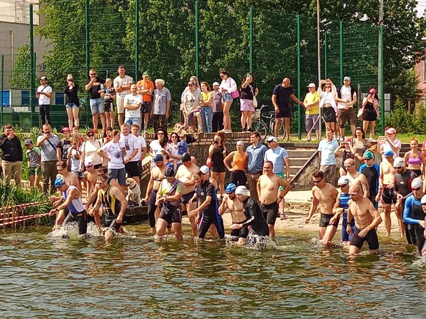 После небольшой официальной части и положенного инструктажа спортсмены выстроились на береговой линии, чтобы по команде броситься в волны разволновавшегося от ветра озера. Вслед за катером мужчинам предстояло преодолеть вплавь дистанцию в 750 метров. Для вышедших спустя несколько минут на старт женщин она составила 350 метров. Постепенно, словно дополнительные буйки, на поверхности озера выстроилась цепочка из разноцветных шапочек пловцов, спешащих к следующему скоростному испытанию.