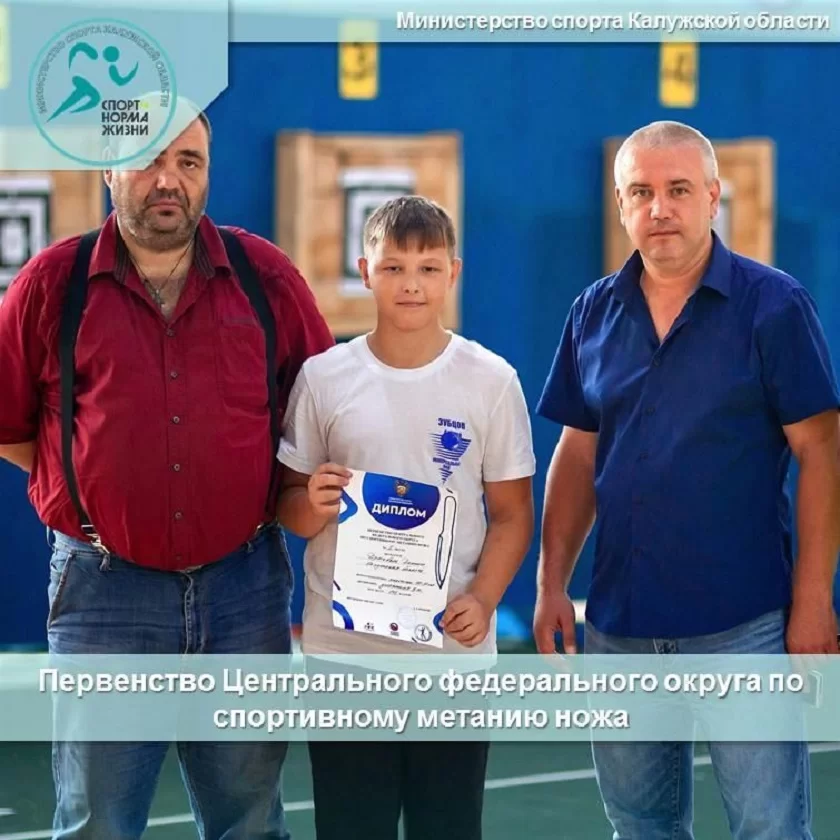 Победителем первенства Центрального федерального округа по спортивному метанию ножа в своей возрастной категории стал юный представитель Калужской области из Обнинска Даниил Дрыгваль.
